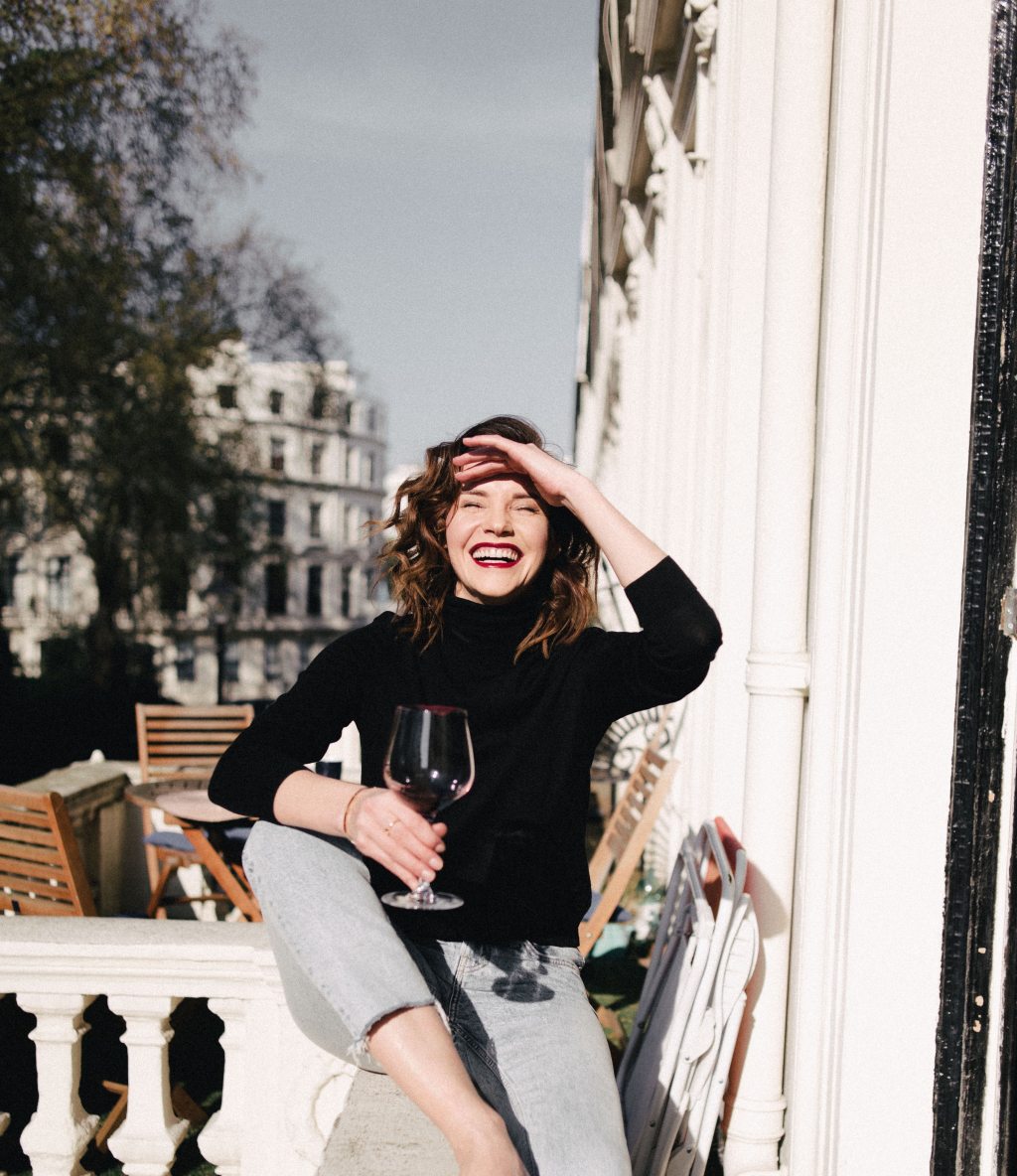 Photo by Olga Lioncat: https://www.pexels.com/photo/happy-woman-with-red-wine-on-balcony-fence-7291233/